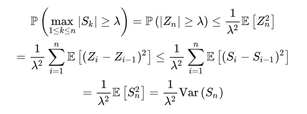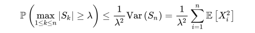定理 7.1(柯尔莫哥洛夫不等式) 若随机变量 是独立的,且所有 均值为 0 ,方差是有限的,那么,对于 ,
