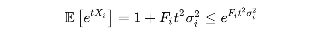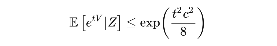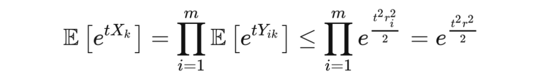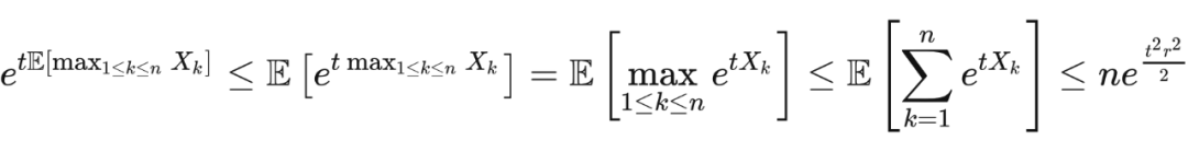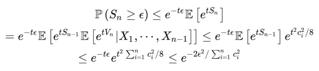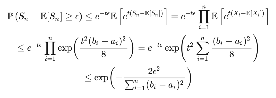 这里第一个不等式是马尔可夫不等式,第一个等式是因为独立性,第二个不等式是因为霍夫丁引理,最后一个不等式是因为取
