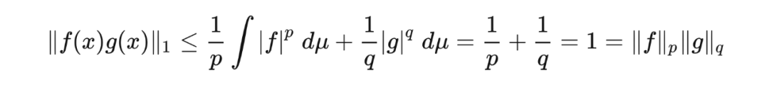 赫尔德不等式的一个推论是闵可夫斯基不等式(Minkowski inequality),即 空间中的函数所满足的三角不等式(triangle inequality)