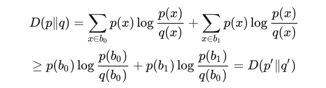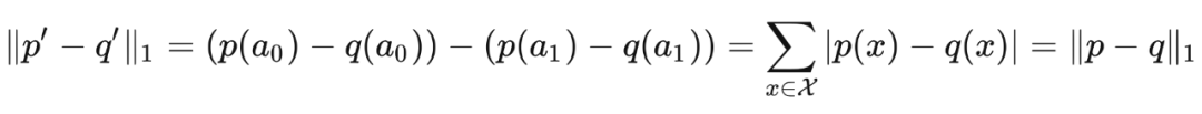 这样我们就证明了,平斯克不等式对于在基数为 2 的集合上的分布成立。现在考虑在集合 上的分布 和 ,这里