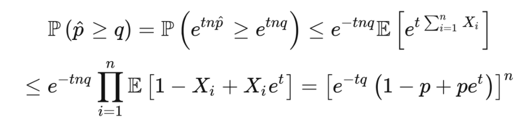 我们在不等式的证明中常常需要用到切尔诺夫边界技巧(Chernoff bounding technique):对于任意 ,先用马尔可夫不等式得出