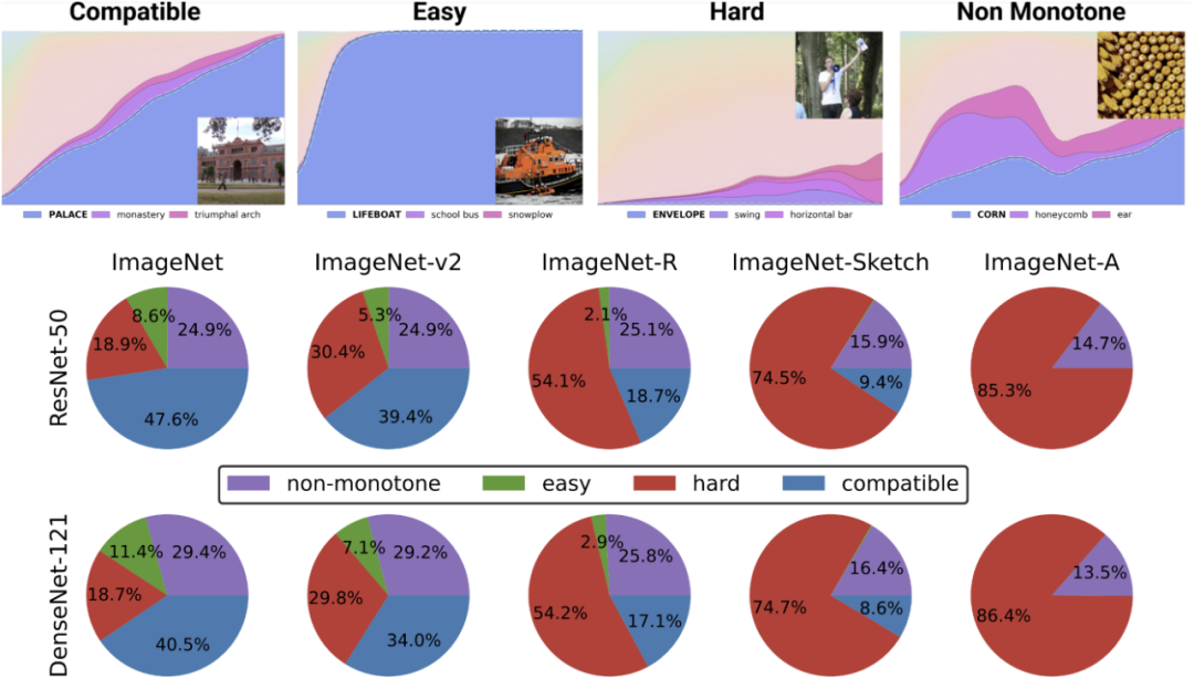 “技能与难度(skill vs. difficulty)”范式是对 Recht 等人和 Miller 等人发现的 “accuracy on the line” 现象的最清晰解释。Kaplen、Ghosh、Garg 和 Nakkiran 的论文还展示了数据集中的不同输入如何具有固有的“难度剖面”,对于不同的模型族,该剖面通常是稳健的。