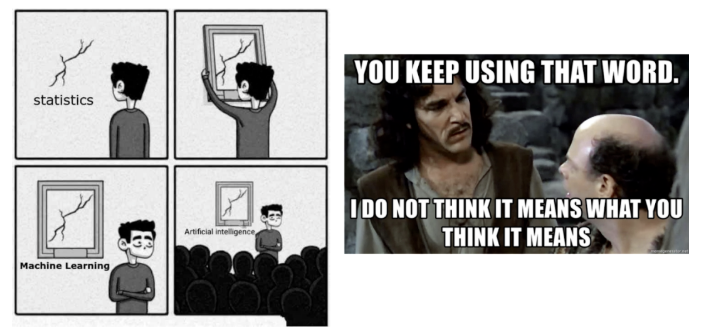 深度学习(或一般的机器学习)经常被认为是简单的统计学,即它与统计学家研究的基本是相同的概念,但是使用与统计学不同的术语来描述。Rob Tibshirani 曾总结了下面这个有趣的“词汇表”: