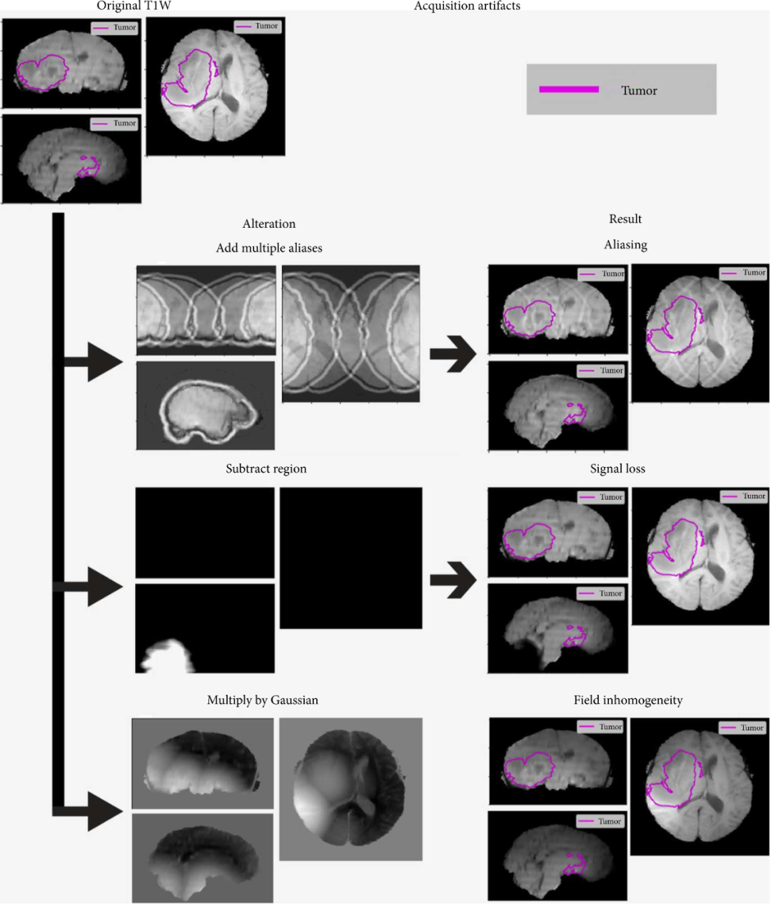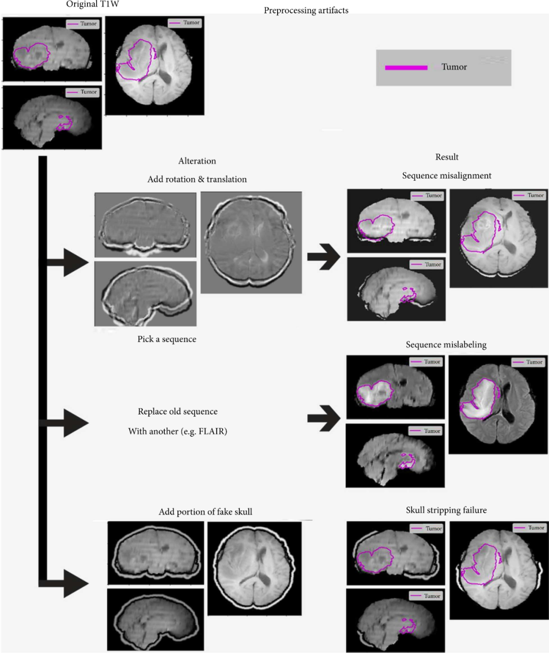 机器学习算法普遍应用于临床研究和其他领域,由于医疗系统的特殊性,我们需要利用故障模式和影响分析(Failure Modes and Effects Analysis, FMEA)来评估其系统的安全性,借此可以发现系统弱点,避免潜在的严重事故。神经胶质瘤有广泛的病理学特征、影像学表现和治疗预后情况,而头部磁共振成像(Magnetic Resonance Imaging, MRI)已经开发了一系列可行的工具包和预处理管道来评估系统安全性,因此,向神经胶质瘤的MRI图像添加伪影来评估模型的稳定性和可信度是很好的选择。在本研究中,作者团队选择了多形性胶质母细胞瘤(Glioblastoma Multiforme, GBM)和低级别神经胶质瘤(Low-Grade Gliomas, LGG)作为试验对象,模拟了七种类型的 MRI 伪影以测试机器学习脑肿瘤分割模型的潜在故障模式。