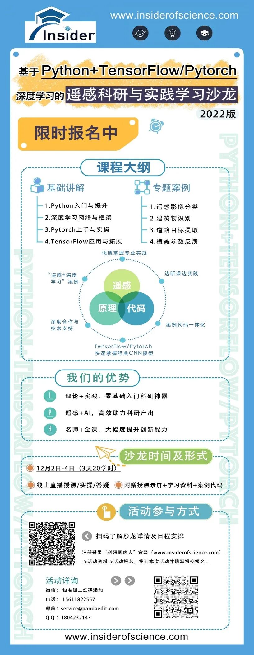 帮我点赞和我一起参加【基于Python + TensorFlow/Pytorch深度学习的遥感科研与实践学习沙龙】!