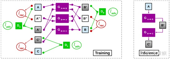- 由真实图像风格迁移生成的图像预原始图像的重构误差,这一部分计算L1 Loss;
