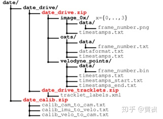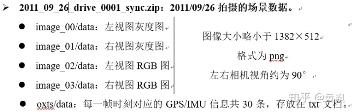 以KITTI数据集为例,它没有给出深度相关的标注信息。其数据组成包括多个场景下的原始图像数据(gray、color),实例分割、目标跟踪、2d/3d目标检测等任务信息。为了方便我后续使用,我将数据结构解析如下,由于知乎不支持表格,所以我就直接截图了:这一部分内容中,对于一个点云数据P:[X,Y,Z,1]^T,其中Z就是深度信息,将其转化为相机左视图的像素点坐标Q:[u,v,1]^T:对于GPS/imu中的点G:[X,Y,Z]^T,将其转化为相机左视图的像素点坐标Q:其中最需要注意的是第一个公式,用于深度的信息的提取,以及P_rect_xx,其前三列数据为修正后的相机内参。3.2 数据处理