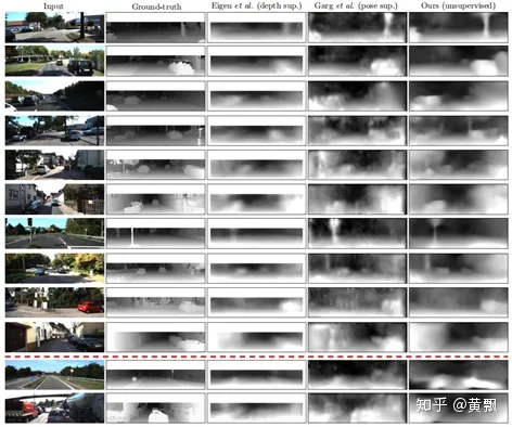 KITTI数据集在考虑深度估计信息误差时,所以判定的时候只取0.40810811H ~ 0.99189189H,0.03594771W ~ 0.9640522229W部分图像区域,当然也经常会只取50m或者80m范围内的深度信息。为了让预测深度和真实深度的数量级范围一致,一般会用二者深度的中位数作为尺度,对预测深度信息进行尺度放缩。4 相关工作