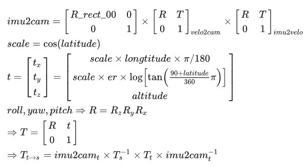 有关相机/像素/世界坐标系的知识我就不介绍了,对于相对位姿,如果将每个视频场景的第一帧的位姿视为初始位姿,那么每一帧的相对位姿计算如下:由于深度信息的转换需要用到相机内参,所以对于图像的缩放需要先处理,假如图像大小的放缩尺度为[zoom_x,zoom_y],那么相机内参的变化如下:由于要求点云数据的反射强度为1,所以需要先将点云数据的反射强度置为1:最后我们只需要保留满足图像边界约束的点的深度信息,如果映射得到的点坐标相同,则只保留深度更小的。那么对于网络训练过程中的数据增强,则可以进行多种变换,下面列出几种基础的:- 随机水平翻转,所以需要改变相机内参的水平平移量cx=w-cx;