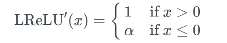 从上图中也能明显地看出来,输入 x 大于或小于 0,微分的 Leaky ReLU 各为一个常量。