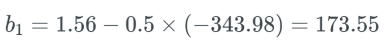 使用这个更新规则,如果我们假设 b_1 之前等于 1.56,而学习率等于 0.5。