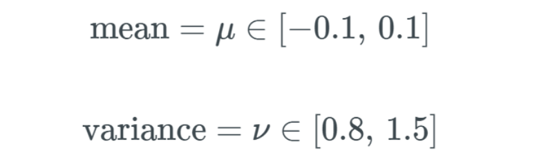 SELU 的输出是归一化的,这可称为内部归一化(internal normalization),因此事实上其所有输出都是均值为 0 且标准差为 1。这不同于外部归一化(external normalization)——会用到批归一化或其它方法。很好,也就是说所有分量都会被归一化。但这是如何做到的?简单解释一下,当输入小于 0 时,方差减小;当输入大于 0 时,方差增大——而标准差是方差的平方根,这样我们就使得标准差为 1。我们通过梯度得到零均值。我们需要一些正值和负值才能让均值为 0。我的上一篇文章介绍过,梯度可以调整神经网络的权重和偏置,因此我们需要这些梯度输出一些负值和正值,这样才能控制住均值。均值 μ 和方差 ν 的主要作用是使我们有某个域 Ω,让我们总是能将均值和方差映射到预定义的区间内。这些区间定义如下: