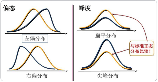 峰度(peakedness;kurtosis): 说明的是分布曲线在平均值处峰值高低的特征数。直观看来,峰度反映了峰部的尖度。样本的峰度是和正态分布相比较而言,如果峰度大于三,峰的形状比较尖,比正态分布峰要陡峭。反之亦然。峰度刻画的是分布函数的集中和分散程度。