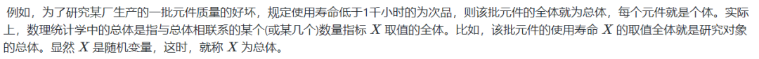 这里的基础概念包括总体, 个体, 总体容量, 样本, 简单随机样本, 如果这些概念都知道, 就可以跳过了哈哈。 在数理统计中, 总体就是研究对象的全体, 通常用一个随机变量表示, 组成总体的每个基本单元叫个体, 而总体中包含的个体总数就是总体容量。