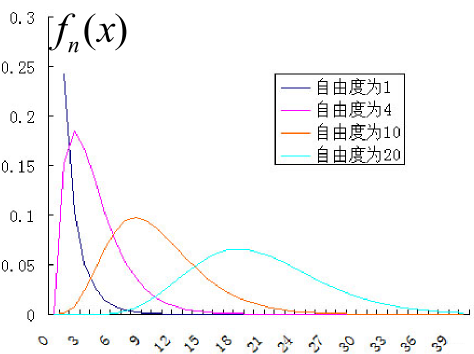 。自由度指的独立变量的个数。概率密度函数长这样:
