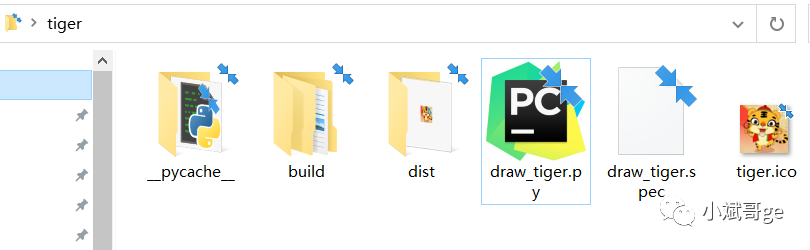*.ico是前面准备的图标文件名,*.py是需要打包的Python程序名,-n参数后的xxx指定打包结果的exe文件名。本文以年初画小老虎的代码为例,将代码draw_tiger.py和图标tiger.ico拷贝到新建的文件夹中,打开命令行执行打包命令:pyinstaller -F -w -i tiger.ico -n tiger draw_tiger.py