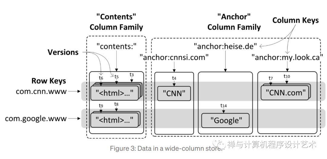 It has quite a flexible schema, unlike the relational model. Different rows may have different attributes or structure. The database often has no understanding of the schema. It is up to the applications to maintain consistency in the schema including any denormalization.