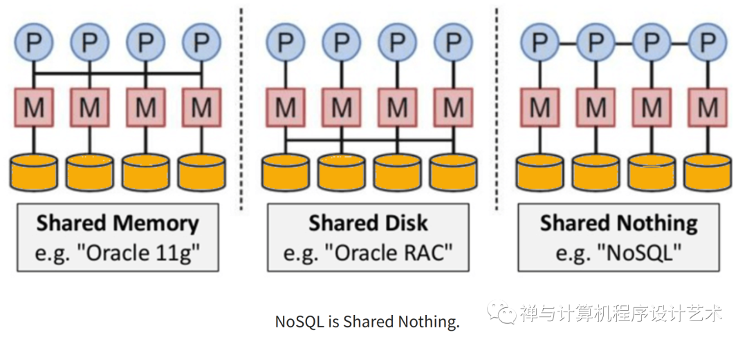 Shared Nothing Architecture. This enables less coordination and higher distribution.