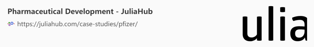 另一个案例来源于 Pfizer(辉瑞) 公司的团队,他们使用 Julia 将他们的一些模拟速度提高了 175 倍: