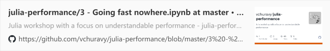 你也许会对 Valentin Churavy 写的关于 Julia 性能的 notebook 程序感兴趣,可以通过它更好的理解 Julia 性能。Valentin 是 Julia 的长期贡献者,在这个领域有很大的权威性。