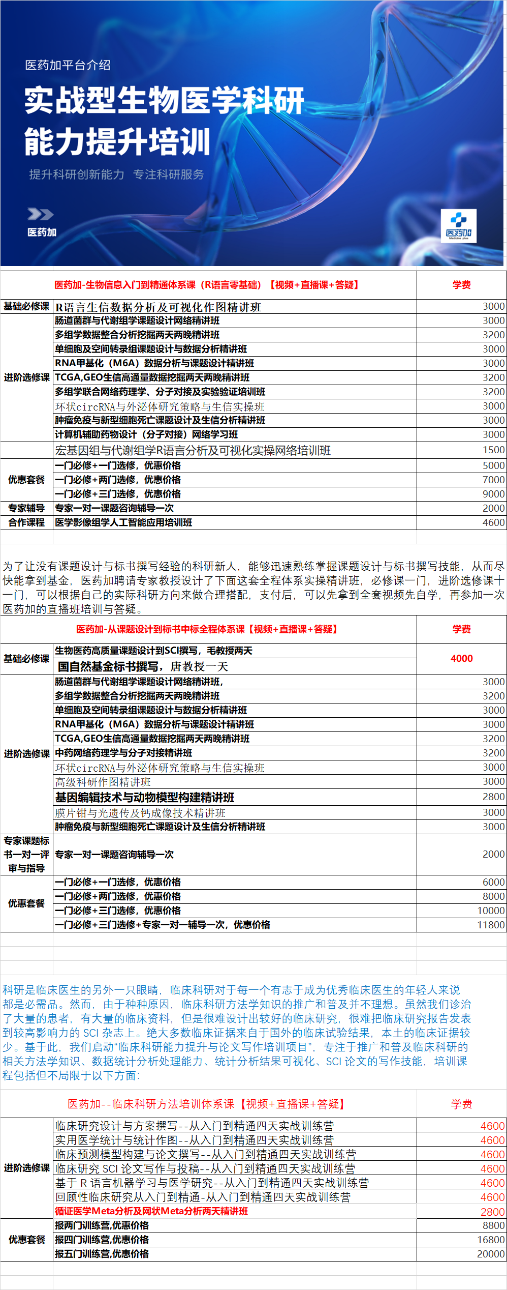 2.本课程中所有统计分析均基于R语言完成,所以也是一门针对医学专业人员的R语言进阶培训课程!