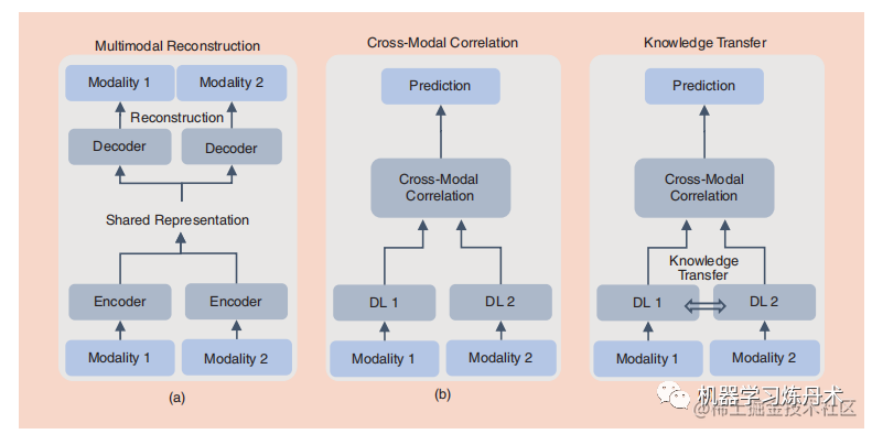除了基于concatenation-based postfusion,还有更先进的方法,考虑交叉模态的关系。Multimodal reconstruction,deep canonical correlation analysis (DCCA) and knowledge-transfer-based fusion are three popular multimodal fusion methods.