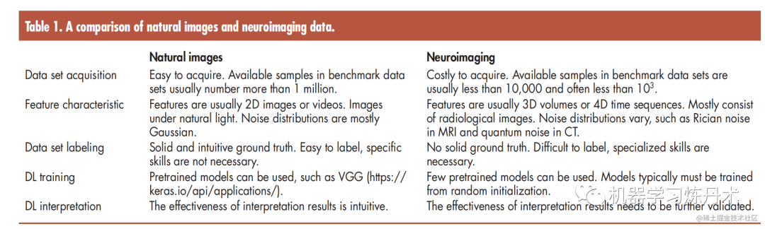 As showns in Table 1, neuroimaging data come with many other additional unique aspects, including the number of modalities, high dimensionality, low signal-to-noise ratio, and small sample sizes compared to natural image data.