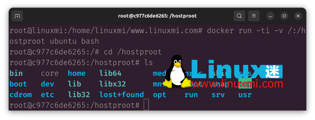 Docker 卷是一项功能强大的服务,允许您通过将容器数据写入主机操作系统上的指定文件夹来共享和保留容器数据。在没有 sudo 的情况下运行 Docker 带来的最大威胁之一是系统上的任何人都可以控制主机操作系统的目录,包括根目录。您所要做的就是运行 Linux Docker 映像,例如 Ubuntu 映像,并使用以下命令将其挂载到根文件夹上:root@linuxmi:/home/linuxmi/www.linuxmi.com