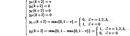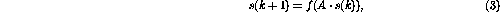 矩阵A中的前两行/列对应于连接到代表两个变量Y和X的节点的链接,接下来的三行代表三个程序行(1、2和3),最后两个代表分支指令所需的附加节点(3'和3'')。然后是初始(迭代前)和最终(迭代后,找到固定点时)的状态如果变量节点的值将严格保在0和1之间,则动态系统(3)的操作将是线性的,该函数