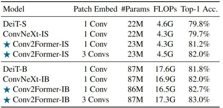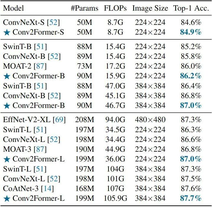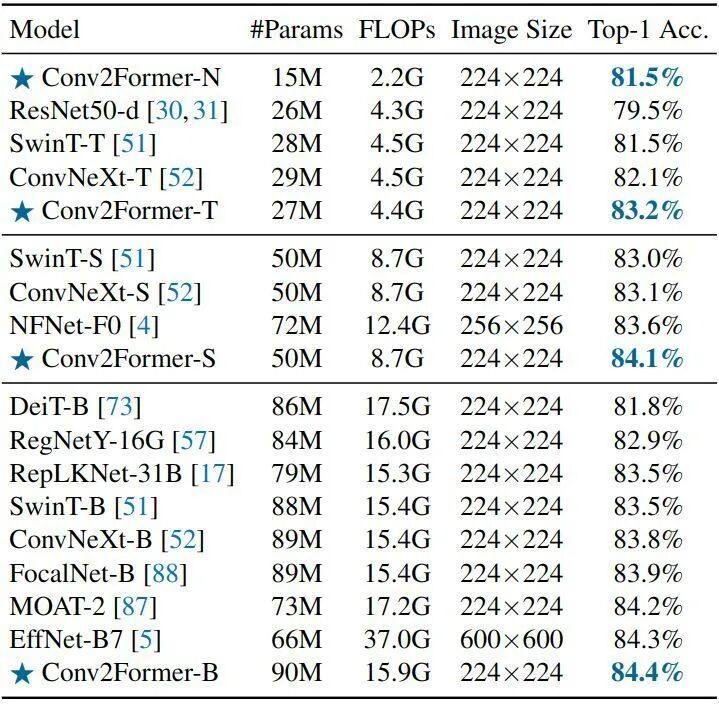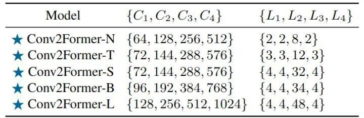 图4:Conv2Former 的架构配置1.1.4 实验结果