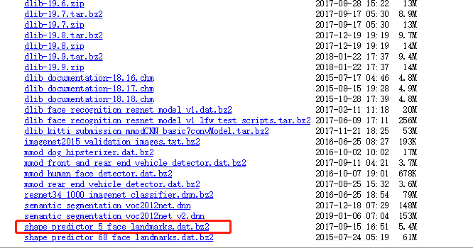 然后手工在网上下载数据模型文件 shape_predictor_5_face_landmarks.dat