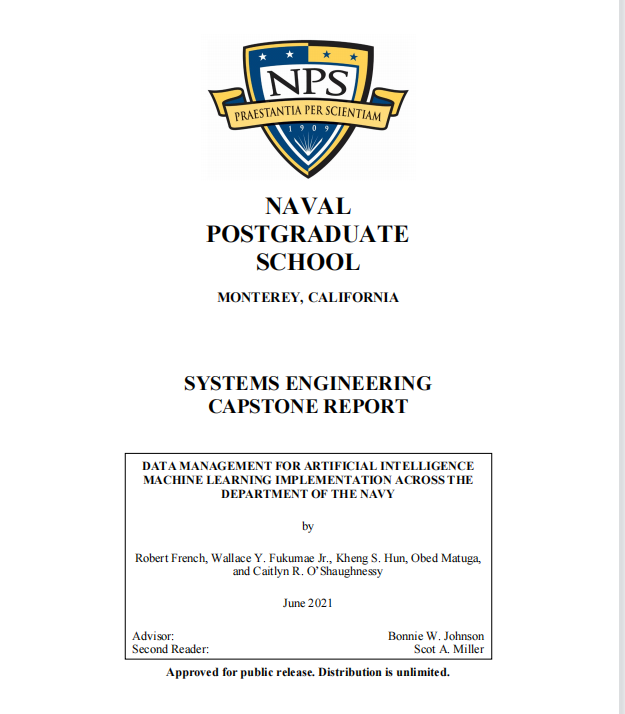 推荐!【系统工程顶点报告】《美国海军部用于人工智能 / 机器学习的数据管理》美国海军研究生院136页报告