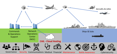 为了解决DON数据研究人员和AI/ML科学家确定的数据需求,Team Time Zone开发了一个中央AI库(CAIL)系统的概念设计,作为解决方案。CAIL系统的目的是简化 DON内部的数据访问和管理,以支持AI/ML系统的开发。CAIL系统旨在减少访问数据的时间(和相关费用),腾出更多时间用于AI/ML系统的实际开发、培训和评估。该团队提出,为了满足未来计划的访问和整合要求,CAIL需要成为一个 "数据云"。图1是CAIL的OV-1;它描述了为AI/ML开发简化DON数据访问和管理的拟议过程。