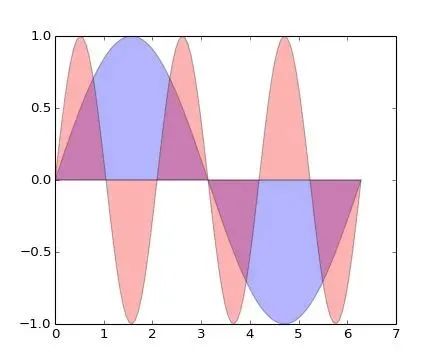 plt.fill(x, y1, 'b', x, y2, 'r', alpha=0.3)