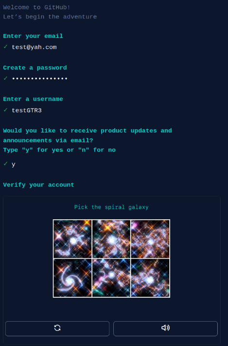 然后使用xdotool工具,该工具是完成GitHub表单的主要脚本。表单完成后,GitHub会提示CAPTCHA: