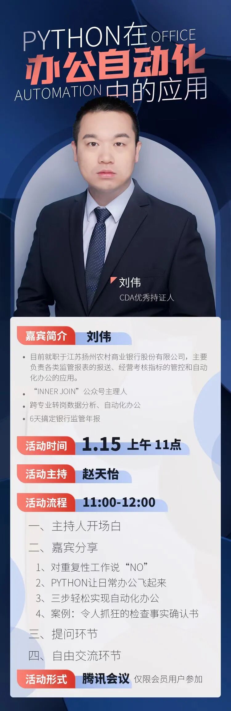 本周会员活动我们继续邀请CDA优秀持证人为大家带来行业精彩分享!邀请大家积极参加~