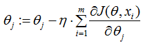 从上图可以看出,梯度下降法在接近最优解的区域收敛速度明显变慢,利用梯度下降法求解需要很多次的迭代。在机器学习中,基于基本的梯度下降法发展了两种梯度下降方法,分别为随机梯度下降法和批量梯度下降法。比如对一个线性回归(Linear Logistics)模型,假设下面的h(x)是要拟合的函数,J(theta)为损失函数,theta是参数,要迭代求解的值,theta求解出来了,那最终要拟合的函数h(theta)就出来了。其中m是训练集的样本个数,n是特征的个数。1)批量梯度下降法(Batch Gradient Descent,BGD) (1)将J(theta)对theta求偏导,得到每个theta对应的的梯度: (2)由于是要最小化风险函数,所以按每个参数theta的梯度负方向,来更新每个theta:
