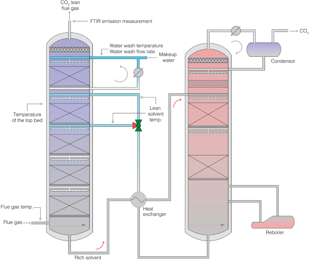 Niederaußem 燃烧后碳捕捉先导工场的简化流程示意图