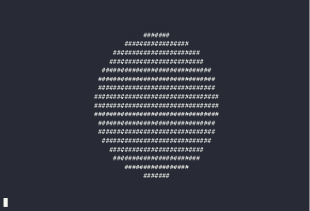 首先,从最简单的工作着手。我们根据 x 坐标和 y 坐标绘制一个圆,虽然这还不是 3D 动画。我们可以通过几种不同的方式来画圆圈,此处我们采用的方法是:针对屏幕上的每个字符,决定应该显示什么,也就是说我们需要逐个字符处理。对于每个字符的坐标 (x, y),我们的基本算法如下: