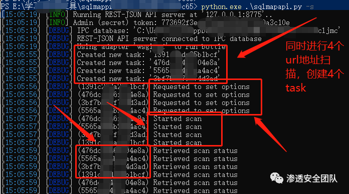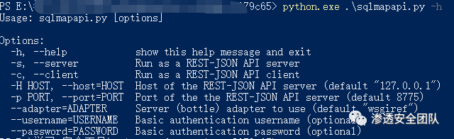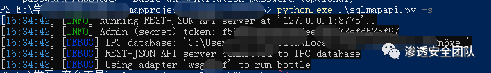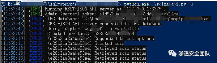 首先要先开启sqlmapapi服务端,在命令行中输入python.exe .\sqlmapapi.py -s开启。