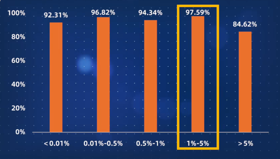 经计算发现,跳空幅度在1%-5%的范围内回补的概率是最高的,但和其他组别相差不大。