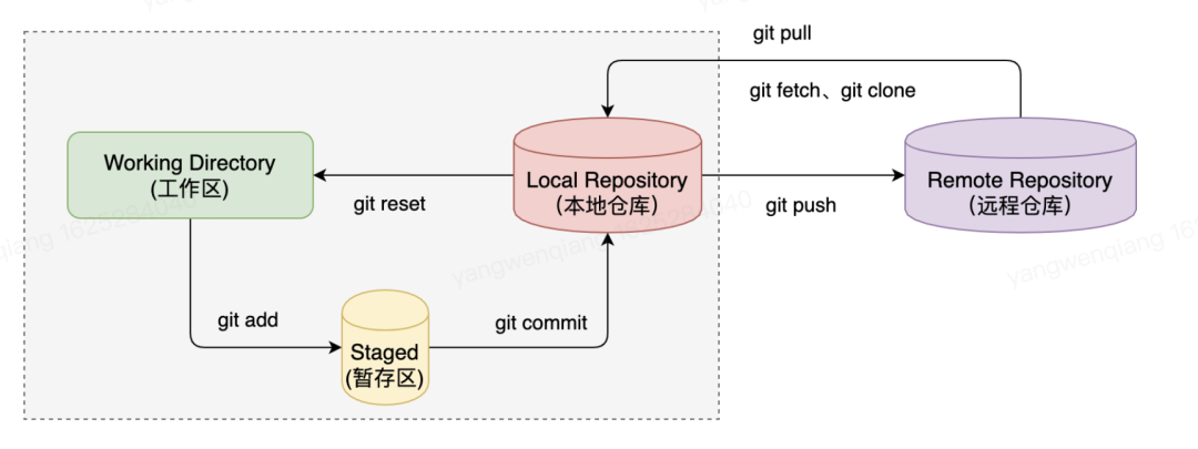 暂存区(Staged/Index):修改了代码之后,需要先将改动add到暂存区,表示将要提交的改动