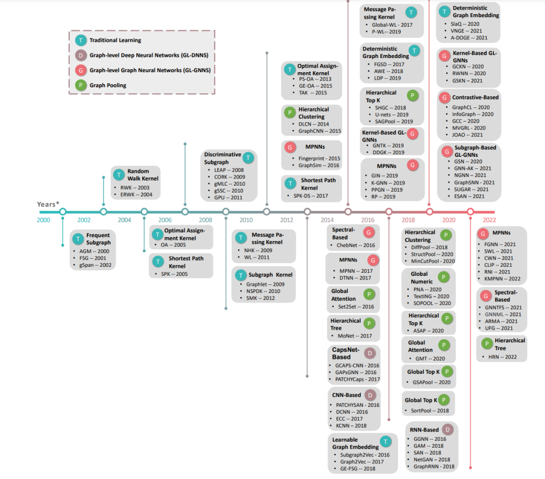 图2:四种主流技术下的图级学习时间线。