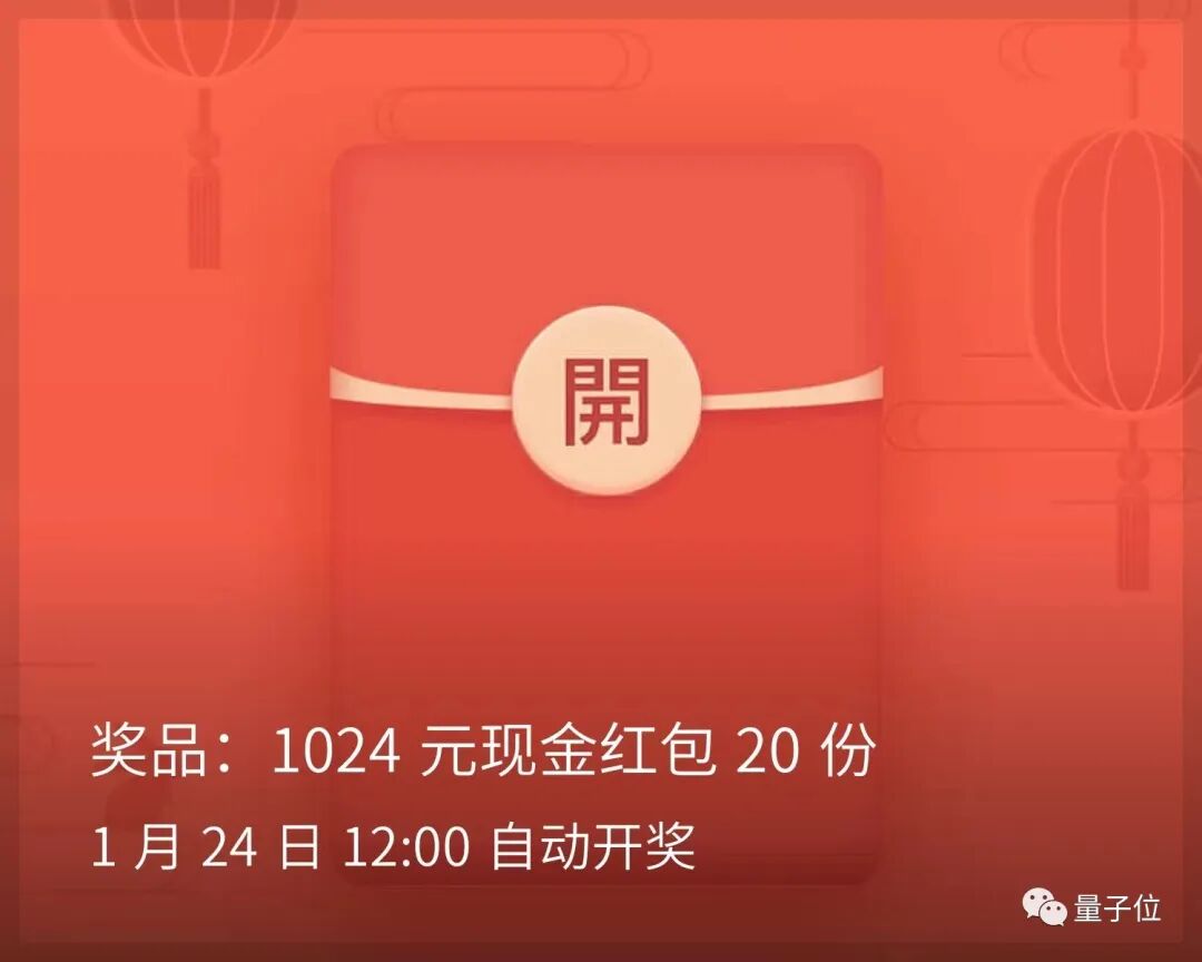 我们一共为大家准备了20个红包,每个里面是1024元,将会在1月24日12:00开奖 🧧