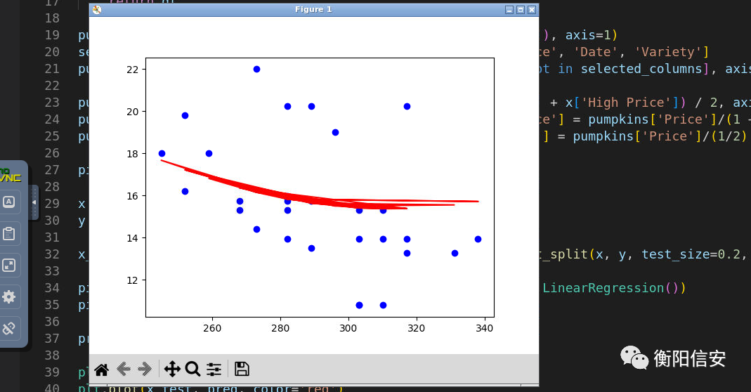 虽然还是很迷惑,pandas的DateFrame类重载了[]操作,实现了这样简便的过滤器,确实厉害,和z3很类似,下一步我们知道了,就是创建训练集和测试集,并简单画一下看看