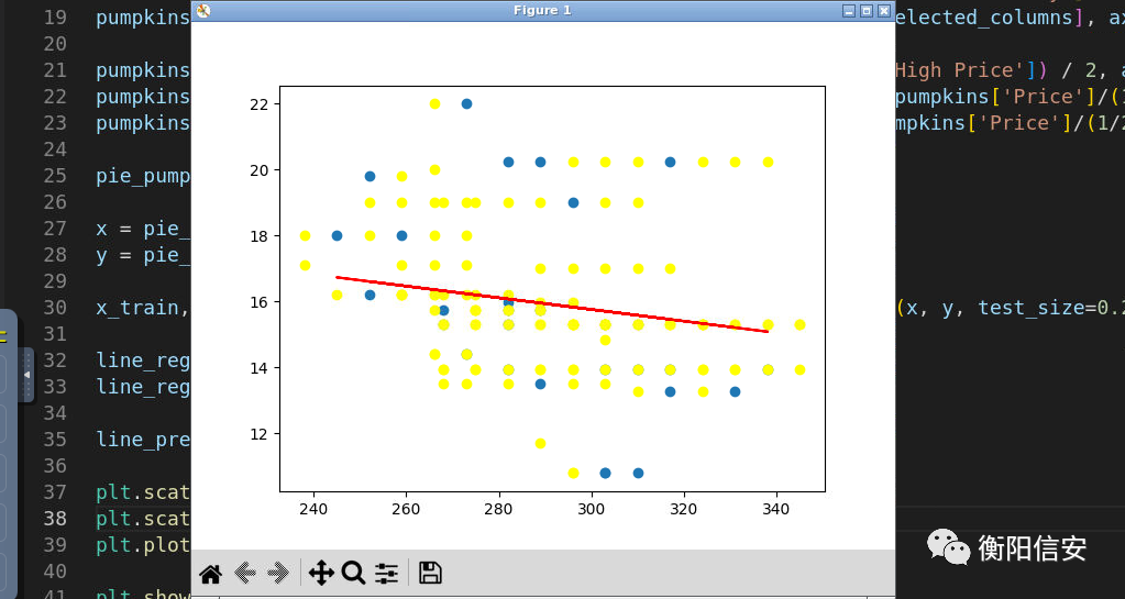 那么,分离出时间和价格,同时注意,我们只训练包含PIE TYPE的南瓜!