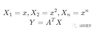 然后经过PolynomialFeatures的处理以后(现在假设为二维),这个关系就可以变成