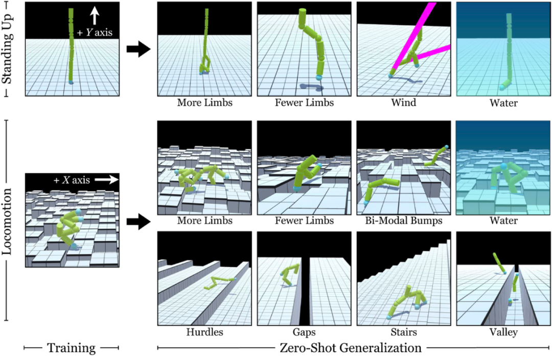 正如行军蚁集体形成一座适应环境的桥梁的例子一样,自然界中常见的集体行为往往会产生适应性强、稳健、对环境配置的假设不那么严格的系统。集体智能作为一个领域,研究的是从许多个体的互动(如合作、集体行动和竞争)中涌现的群体智能(Group Intelligence)。在这个领域中,诸如自组织、涌现行为、群优化和元胞自动机等思想被开发出来,以模拟和解释复杂系统。因此,看到这些思想被纳入较新的深度学习方法中是很自然的。我们不认为深度学习模型必须按照建造桥梁的思路来构建。正如我们将在后面讨论的那样。深度学习领域之所以走上这条道路,可能只是历史上一个偶然的结果。事实上,最近有几项工作通过将深度学习与集体智能的理念相结合,以解决深度学习中存在的局限性。从将元胞自动机应用于基于神经网络的图像处理模型(Mordvintsev et al. 2020;Randazzo et al. 2020),到重新定义如何使用自组织主体来处理强化学习中的问题(Pathak et al. 2019; Huang et al. 2020; Tang and Ha, 2021)。随着我们见证了并行计算硬件(适合模拟集体行为,见图3的例子)的不断技术进步,我们可以期待更多的作品将集体智能纳入到传统深度学习处理的问题中去。图3. GPU硬件的最新进展能够对成千上万的机器人模型进行逼真的3D模拟(Heiden et al. 2021),如本图所示,来自(Rudin et al. 2021)。这样的进展为大规模的三维模拟人工主体打开了大门,这些主体可以相互交流,并集体发展智能行为。这篇综述的目的是对集体智能领域的核心思想、工具和见解,尤其是自组织、涌现和群体模型如何影响深度学习的不同领域,从图像处理、强化学习到元学习,提供一个高层次的调查。我们希望这篇综述能对未来的深度学习集体智能的协同作用提供一些见解,我们相信这将在这两个领域带来有意义的突破。集体智能是一个在社会学、商业、通信和计算机科学等领域广泛使用的术语。集体智能的定义可以概括为一种不断增强和协调的分布式智能,其目标是通过相互认可和互动,取得比群体中任何个体更好的结果(Lévy, 1997; Leimeister, 2010)。集体智能带来的更好结果归功于三个因素:多样性、独立性和去中心化(Surowiecki, 2005; Tapscott and Williams, 2008)。为了我们的目的,我们认为集体智能作为一个领域,是对许多个体之间的互动(可以是合作性的,也可以是竞争性的)中涌现的群体智能的研究。这种群体智能是涌现的产物,当观察到群体具有组成群体的个体所不具备的特性时,它才会出现,并且只有当群体中的个体在更广泛的整体中互动时才会产生涌现现象。这种系统的例子在自然界中比比皆是,从个体之间简单的局部互动/协作中产生了复杂的全局行为,以实现共同的目标(Deneubourg and Goss,1989; Toner, 2005;Sumpter,2010; Lajad et al. 2021)。在这篇评论中,我们仅限于关注集体智能的模拟,而不是分析在自然和社会中观察到的集体智能。早期数十年的工作也探索了集体行为的模拟,并从这种模拟中收集见解。Mataric(1993)使用物理移动机器人来研究导致群体行为的社会互动。他们提出了一套基本的相互作用机制(例如,避免碰撞、跟随和聚集),希望这些基本要素能够使一群自组织主体完成一个共同的目标或相互学习。受在真实的蚂蚁群中观察到的群体行为的启发,Dorigo等人(2000)提出了stigmergy(社会性昆虫使用的一种特殊形式的间接通信)作为分布式通信范式,并展示了它是如何启发解决分布式优化和控制问题的新型算法的。此外,Schweitzer和Farmer(2003)在许多不同的背景下应用了布朗主体模型。结合多主体系统和统计方法,作者提出了一个理解复杂系统的连贯框架的愿景。