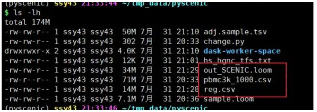 nohup bash scenic.bash 1 >pySCENIC.log 2 >&1 &这一步会得到11M的out_SCENIC.loom文件。最重要的三个文件如下: