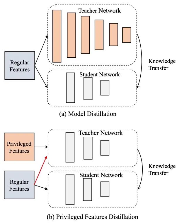 Zhou G, Fan Y, Cui R, et al. Rocket launching: A universal and efficient framework for training well-performing light net[C]//Proceedings of the AAAI Conference on Artificial Intelligence. 2018, 32(1). 3.1.2 《Privileged Features Distillation at Taobao Recommendations》这篇同样是阿里的一篇将“目标蒸馏-logits方法“应用到推荐系统领域的论文,被KDD 2020所接收。 论文《Privileged Features Distillation at Taobao Recommendations》提出的蒸馏技术是我在工业界见过的知识蒸馏用在推荐系统领域最广泛的技术之一,整篇文章思路比较朴素,对于工业应用具有非常大的借鉴意义。因此,我会详细重点介绍这篇论文。
